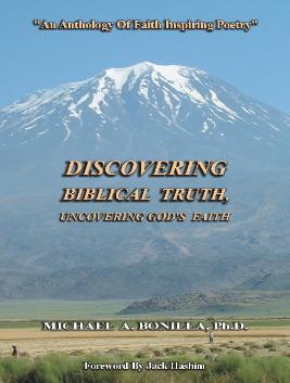 | Poetry Book: Discovering Biblical Truth, Uncovering God's Faith An anthology of 103 prophetic poems that were written by Dr. Michael A. Bonilla, under the divine and prophetic inspiration of the Holy Ghost. The poems touch on recent major archaeological discoveries as well as an assortment of other subjects, including natural, scriptural, spiritual truths and revelations. This prophetic book, makes an awesome witnessing tool that God can use to reach the lost and those that are not saved. All books are signed. Please specify to whom should I address all books to... Each book is $15.00 |