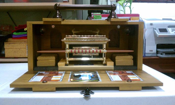 | Now, at the very beginning of this week, the Revelation Song by Kari Jobe has been flowing in and out of me for days. I did not know exactly why this was happening... sensing God was up to something, I decided to buy song online from the woman who actually wrote this awesome and inspiring worship song... Jennie Lee Riddle. During the week, I bought all the materials that I would need to work on this carrying box. Whenever I would decide to start the project, I would hope to be able to transform it into a masterpiece, believing God for the Spirit's anointing, which would empower me to complete this project for His Glory! So on Friday morning of June 10th, when I got home from work at 01:20am, I felt an anointing on me and I realize that my help (God's spirit) was available and would empower me to start this project and ultimately finish it some time later on... but suddenly I realized that before I started the project, I felt in the spirit I would need to play, listen and hear the Revelation Song throughout working on the project (the song was set on repeat mode). This particular ark model is not holy or sacred but rather what it means... the representation and the understanding of its purpose is a holy thing to God! So I began working on this project at 01:45am on Friday morning of June 10th of 2011... and stopped at 08:00am. The next day, Saturday June 11th, I began working again at 01:30am and finally finished the project at 04:30am. See below the finalized product and project!!! |